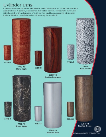 Cylinder Urns are made of Aluminum. Adult measures 11.75 inches tall with